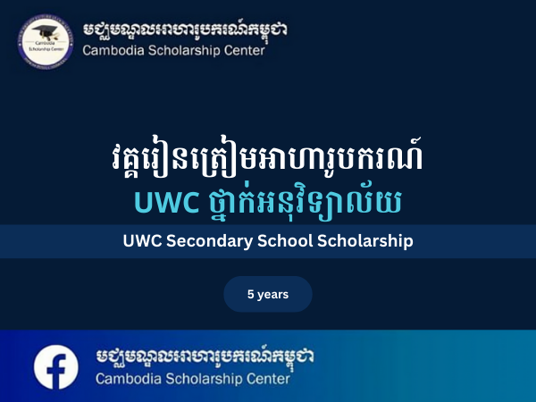 Information: https://www.cambodia.uwc.org/how-to-apply/5-year-uwcsea-scholarshipsApply link: bit.ly/uwcsea-5yrs-apply-2024-2029Email: leerosa974@gmail.comPassword: LeeRosa11*